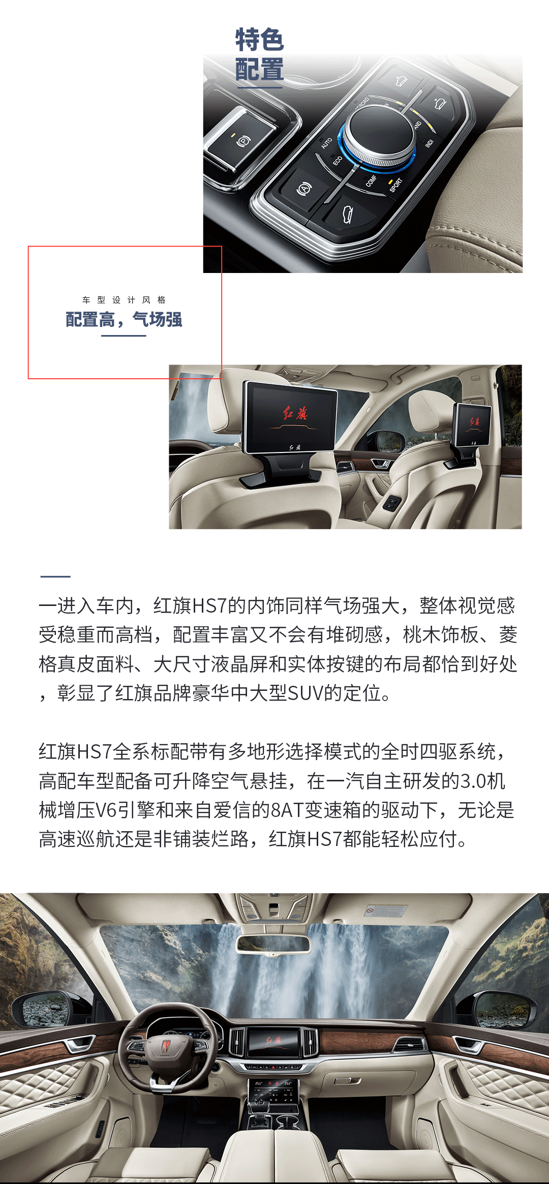 总的来说,红旗HS7代表了目前中国自主品牌在豪华7座SUV领域的最高造车水准,如果您心中一直有着一份“红旗车情怀”,需要偶尔行驶于非铺装路面,并希望以最高规格的中国式礼仪来接待外宾和商务伙伴的话,那么红旗HS7就是你的最佳选择。