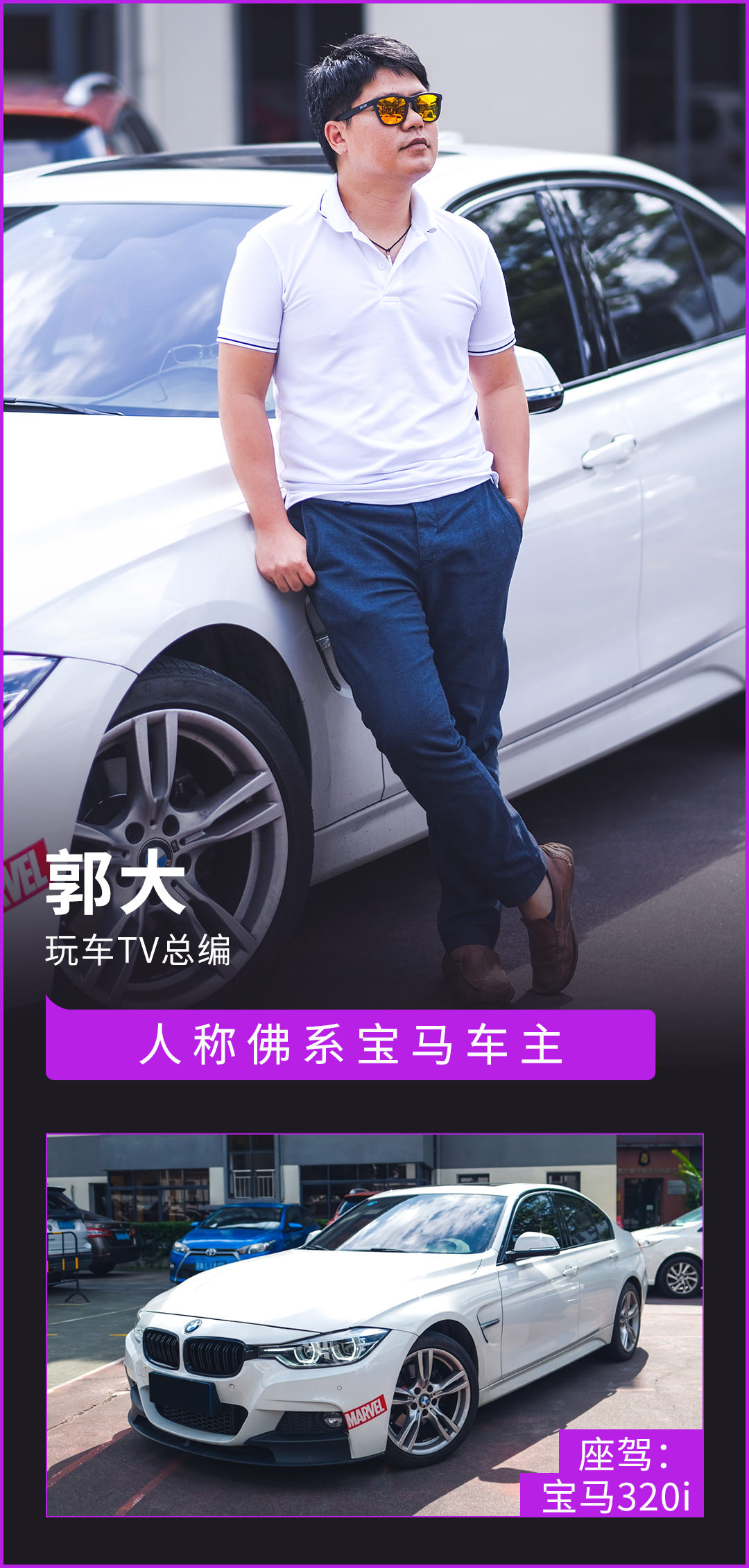 作为视频部总编的郭大掌管着玩车TV的视频内容规划,他的座驾是一台宝马320i。