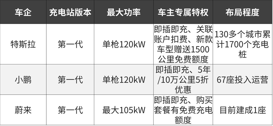 小鹏是国内新势力厂家建造超级充电站的企业,目前小鹏汽车的超级充电站采用充电总功率180kW的双枪直流充电桩,电流使用柔性分配方式,单枪可实现最高120kW的充电功率,平均功率为90kW,最大输出电流为200A。目前已经有67座超级充电站正式投入运营,根据规划,2019年底前将在近30个城市布局超过200座超级充电站。而且,小鹏汽车的超级充电站是支持其他品牌车型充电,在便利程度上相比起特斯拉要方便不少,有人说这样会降低小鹏用户的专属感,我倒觉得这个问题得两看,这很可能令其它电动车用户或潜在用户对小鹏产生兴趣,到底封闭好还是开放好并无定论。同时如今蔚来开始逐步建造自己的超级充电桩,并且通过超级充电以及换电的模式,使车主更加便捷添加能源,但是后续成本是否通过其他方式转嫁到消费者身上?
