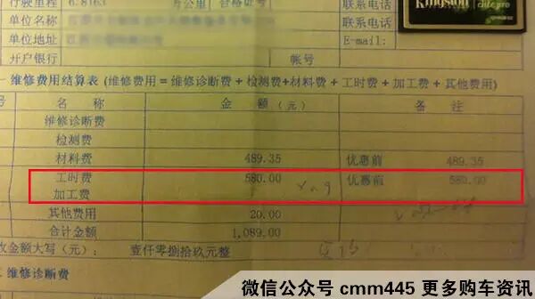 往往在4S店内,商家会以贴板的形式,把汽车配件和维修工时费详细罗列出来,看起来很透明。实际上,工时费大有文章可做。修过车的朋友都知道,汽车的零配件往往是不打折的,但工时费经常会有折扣,有的品牌甚至能给出打七折的价格。