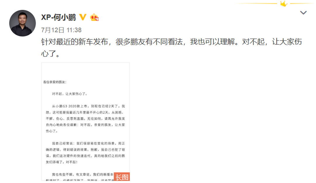 针对小鹏车主们的各种诉求,在7月12日,小鹏汽车董事长何小鹏发布了一则声明,并从这几点内容来对车主们进行解惑跟补偿。