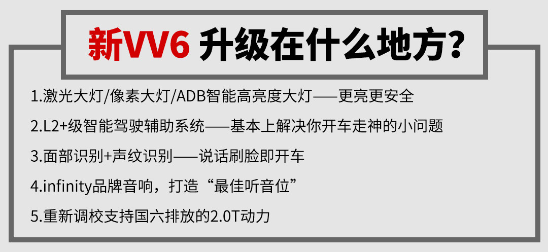 是的,教授说了一水的配置,那么这是否就代表着新VV6就是个配置升级的小改款呢,不急,让教授慢慢与你道来。