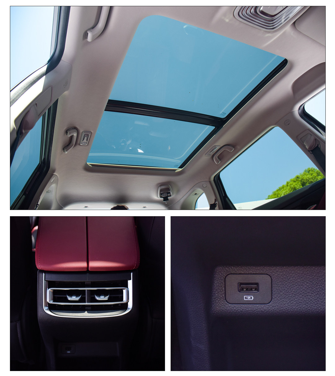 全景天窗延伸至后排乘客头顶,配备后排出风口,额外提供一个USB充电插口,后排乘客不会觉得被怠慢。
