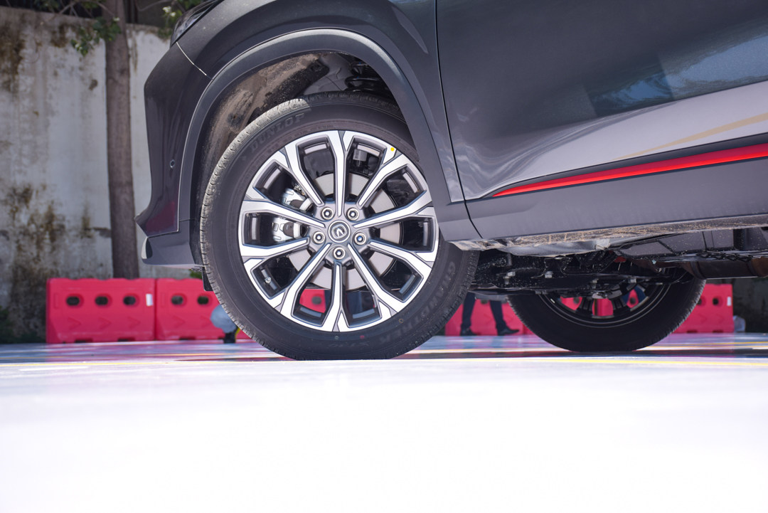 运动版车型装配的是19寸的轮胎,品牌为邓禄普,轮圈样式设计感很强。