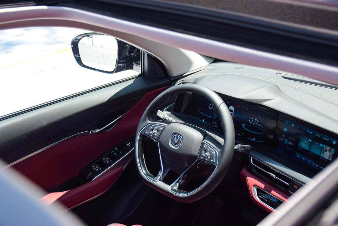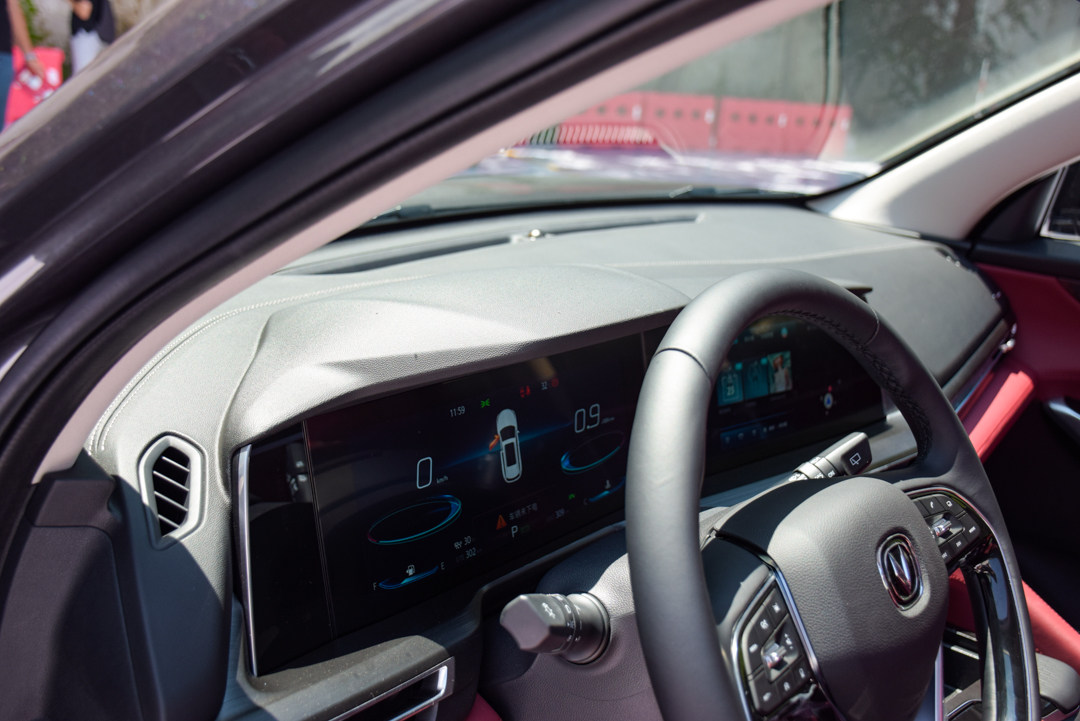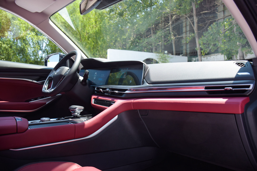 中控台布局以驾驶员为中心,按键区域向驾驶位置倾斜,最突出的还是那块贯穿式液晶显示屏,虽然并非首次在车辆上出现,但引发的效果足够惊艳。