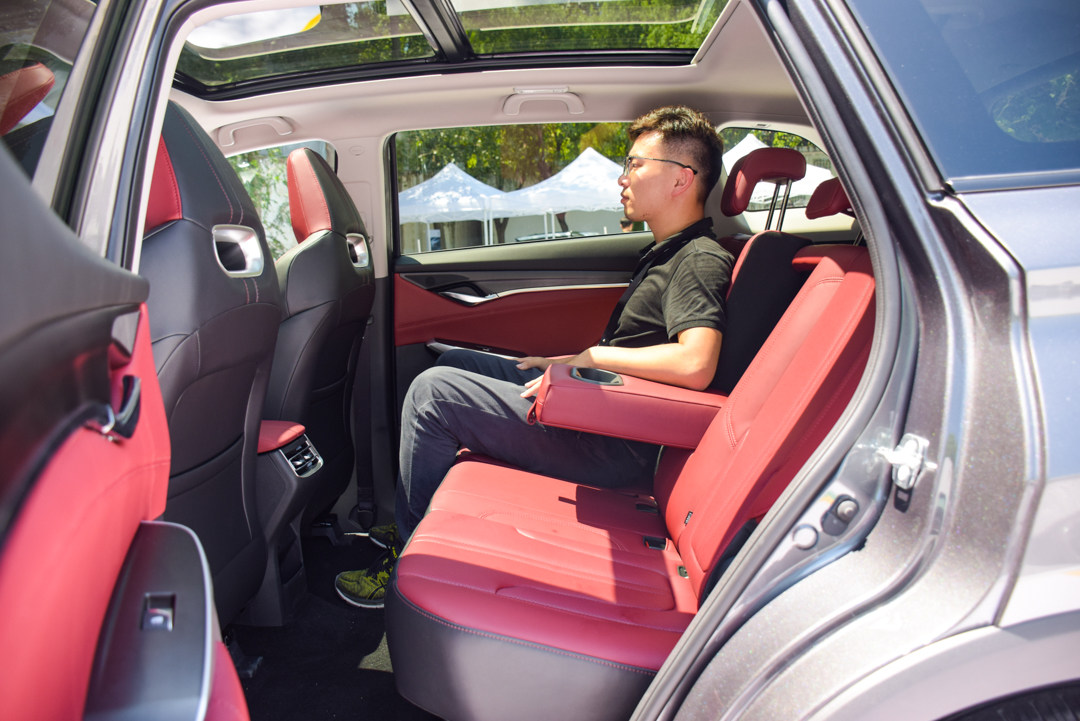 身高175CM的乘坐者在前排座椅调整至正常状态下依然享有不错的后排空间,腿部和头部都有足够的余量,加上近乎纯平的地台,并不会感到身体舒展不开。