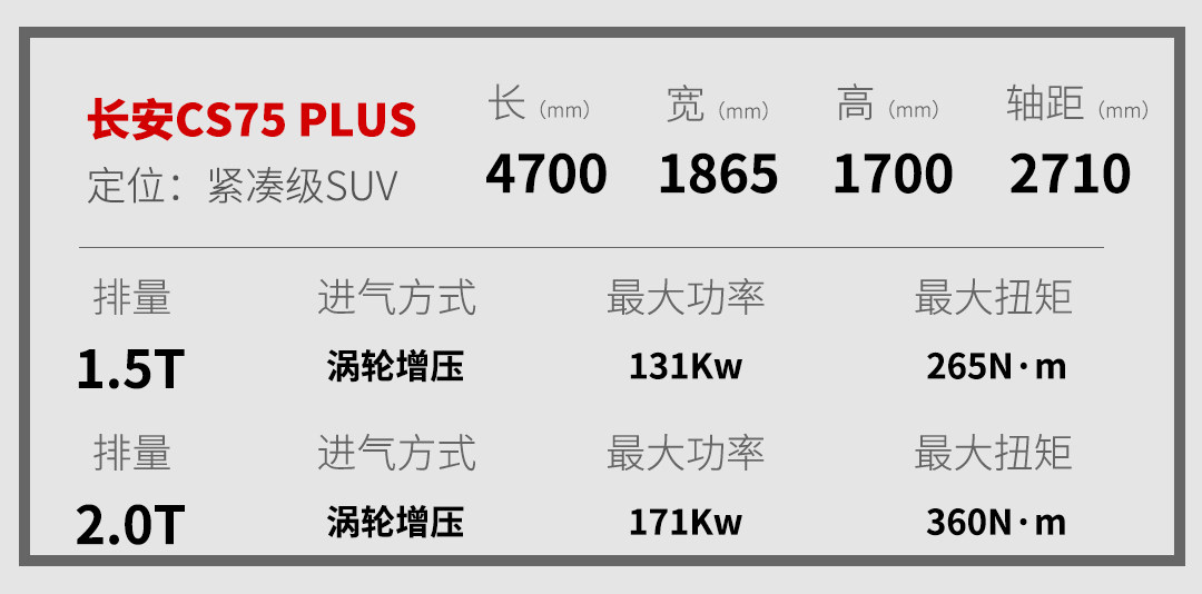 PLUS的名词解释是“优势;好处;加号”,这个词完美贴合了国人的消费心理:多既是好。所以,长安CS75 PLUS来了。