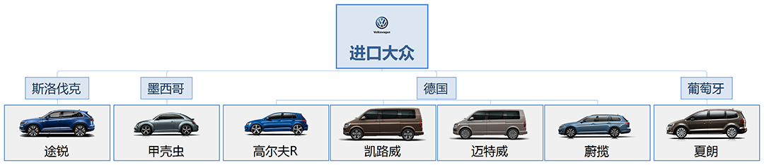 国内用户购买的大众进口车型中途锐SUV占了很大一部分,接着是MPV夏朗和经典小车甲壳虫。