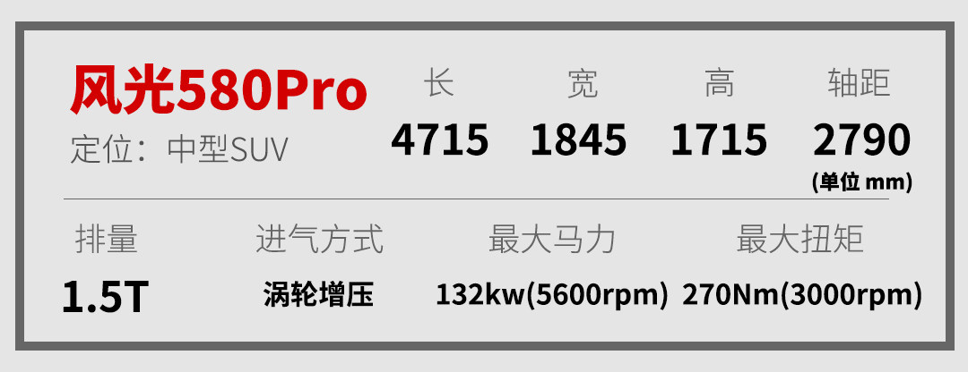 风光580Pro外观上与风光580相比变化不大,名称也只是多了一个Pro而已,但实际上,这是一款全新开发的车型,无论是内饰、动力、还是底盘。