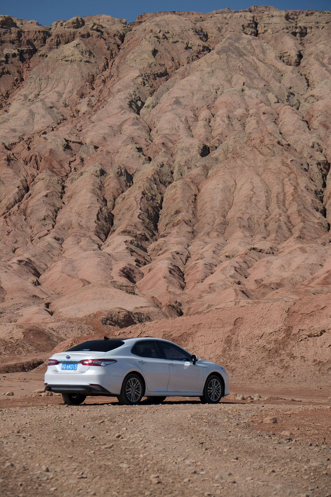13年后的今天,我接到了“丰田凯美瑞&雷凌双擎极热驾控挑战赛”的邀请,地点在新疆吐鲁番的火焰山,这个出现在《西游记》、有着神话色彩的地方。百度一番,才知道它是中国最热的地方,曾录得夏季47℃ 的高温,地表温度更是可以达到70℃。另外,它也是诸多主机厂进行车辆耐久性测试的地方,所以在吐鲁番火焰山路上,最多的不是旅游大巴就是路试新车。