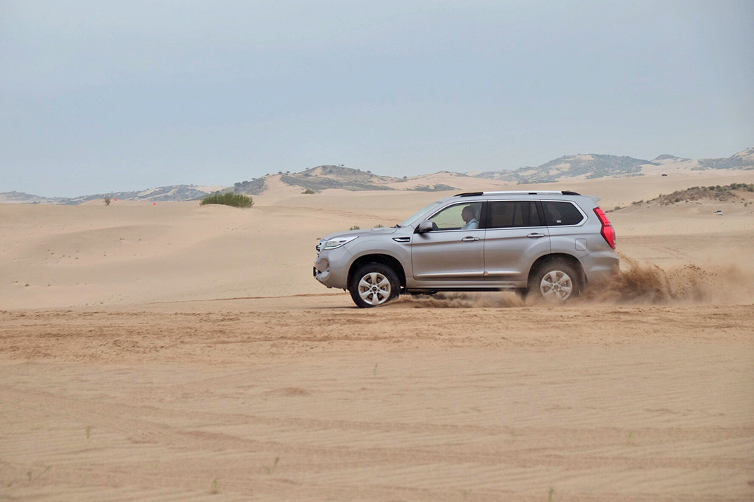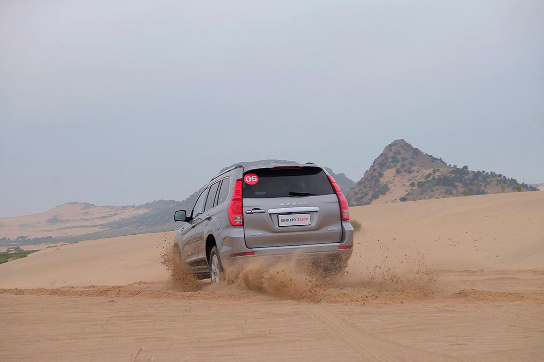 去到空旷无垠的沙漠无人区后,这就是哈弗H9表演的舞台,长行程悬架能够吸收那些大型坑洼,智能的全地形控制系统则是自动调整四驱状态,无论你想达到哪里,H9总能帮你实现。在沙漠路况中,你能感受到发动机的动力输出、沙子对轮胎的推挤以及悬架对冲击的吸收,这种综合感觉就像是在沙漠上跳起了华尔兹,每一秒都是你可以享受的驾驶乐趣,非常独特且有魅力。