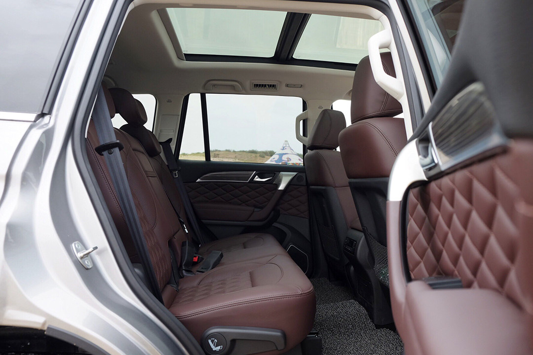 它的空间也是一绝,毕竟这是一款中大型SUV,哪怕轴距“只有”2800mm,但它还是能提供超级充沛的后排空间,起码我们能把那些背包、杂物都轻松地堆在后排同时,还能让后排乘客坐得舒服。它也是一款7座SUV,第三排座椅采用了豪车上那种电子按钮控制,仪式感以及高级感十足。