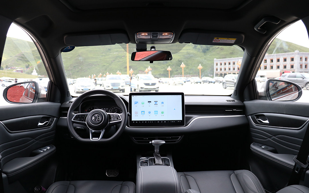 内饰为环抱式驾驶舱空间设计,配色采用黑色与白色的拼接处理。从中控台到扶手处均有大面积软皮包裹,营造出温馨、有档次的视觉感受。12.3英寸的全液晶仪表盘+15.6英寸的全触摸中控显示屏显得科技感满满,触摸控制调节集成于显示屏内,从而代替传统的物理按键。但是调节按键较少,容易造成误触控,特别是手心特别容易出汗的车主,车上可能需要准备一条毛巾擦手,避免导致触摸失灵。