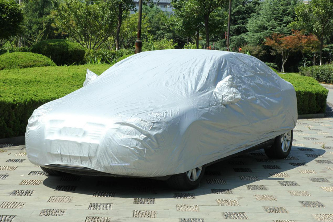 其次如果不是地库,将车辆妥善停放好以后,可以罩上车衣,车衣在这里的作用绝对不是防晒,而是可以防止台风吹起的细碎砂石、树木的断枝残叶等等略微尖锐的物体划伤车漆,并且能对偏酸的雨水有一定防护作用。