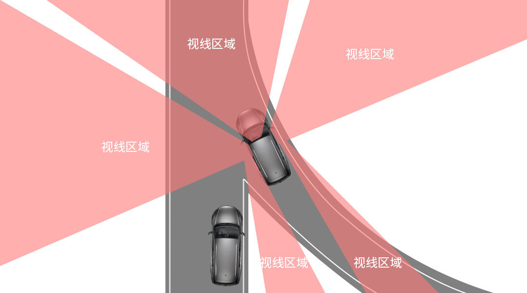 这种情景下人在正常坐姿时无法观察到主道上行驶过来的车,主道上快速驶来的车正好处在盲区内,因此这种场景确实危险,而且由于这种情况往往出现在高速公路的道路交汇处以及快速道路上,因此一旦发生事故后果也是很严重的。