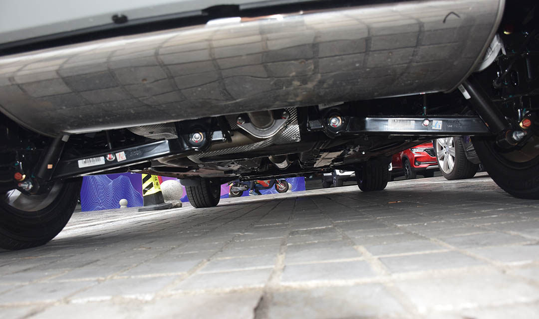 悬架方面,1.5T车型采用麦弗逊后多连杆独立悬架。悬架行程不算长,在颠簸路面的时候,在过滤掉大部分的颠簸感时,还是会有些细碎感通过底盘传递上来。不过,整体上还是十足的家用舒适定位及表现。