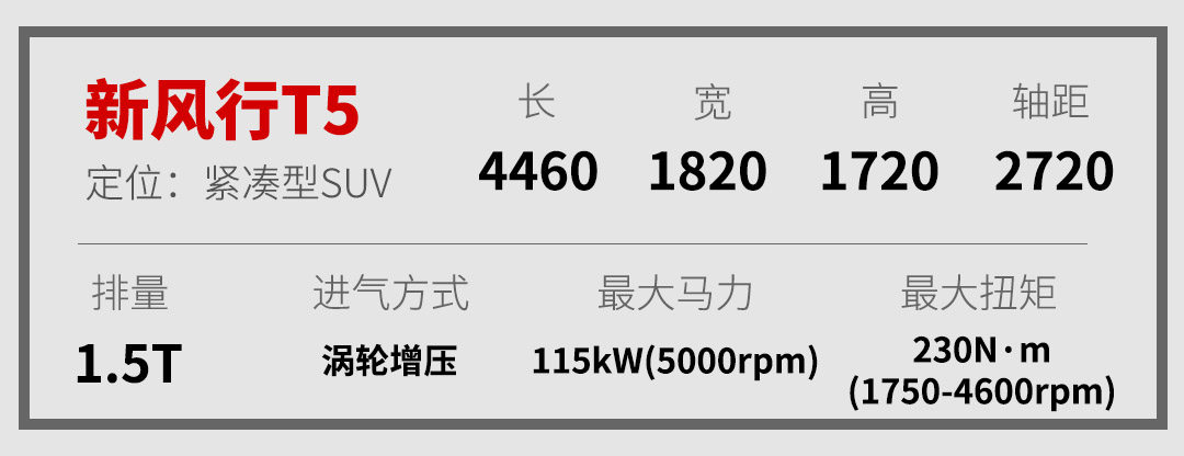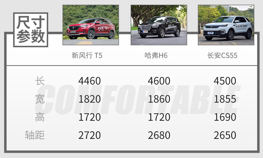 新风行T5车身尺寸在该级别上中规中矩,而对比其它主流竞争车型,其轴距上有一定的优势。主打入门紧凑型SUV的新风行T5,想必更有优势。