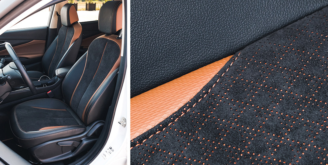 这种带有网格纹路的手感不错,被应用于新一代昂科拉的中控台和座椅的局部包裹。