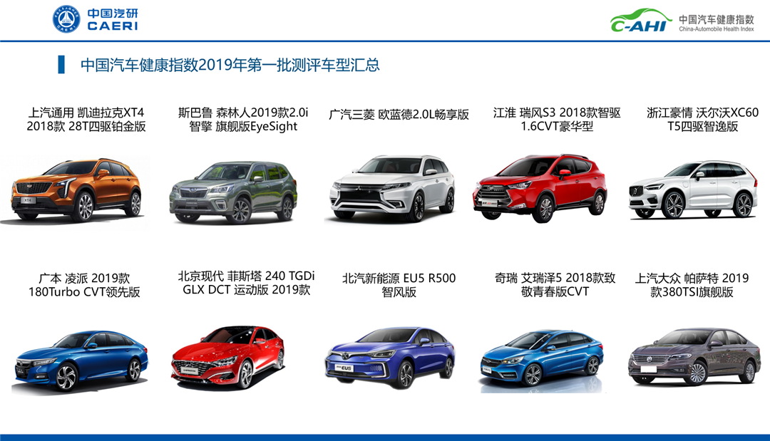 日前中国汽车健康指数管理中心公布了2019年第一批车型测评结果。