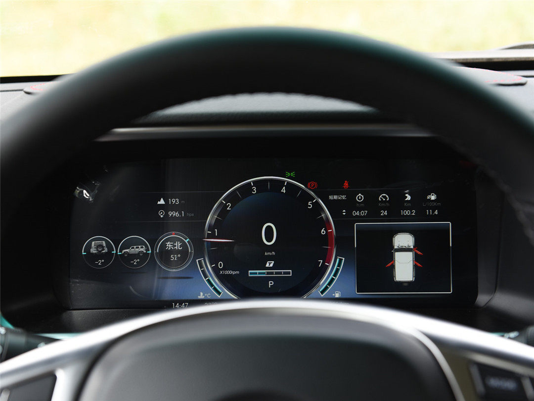 大尺寸液晶中控屏绝对是标配,而仪表也是全液晶样式,方向盘则采用平底三幅式设计,发动机一键启动按键和四驱模式切换功能布局在两个出风口之间。从内饰设计上,BJ40可以说已经完全没有了北汽以往老式越野车产品的粗糙感。