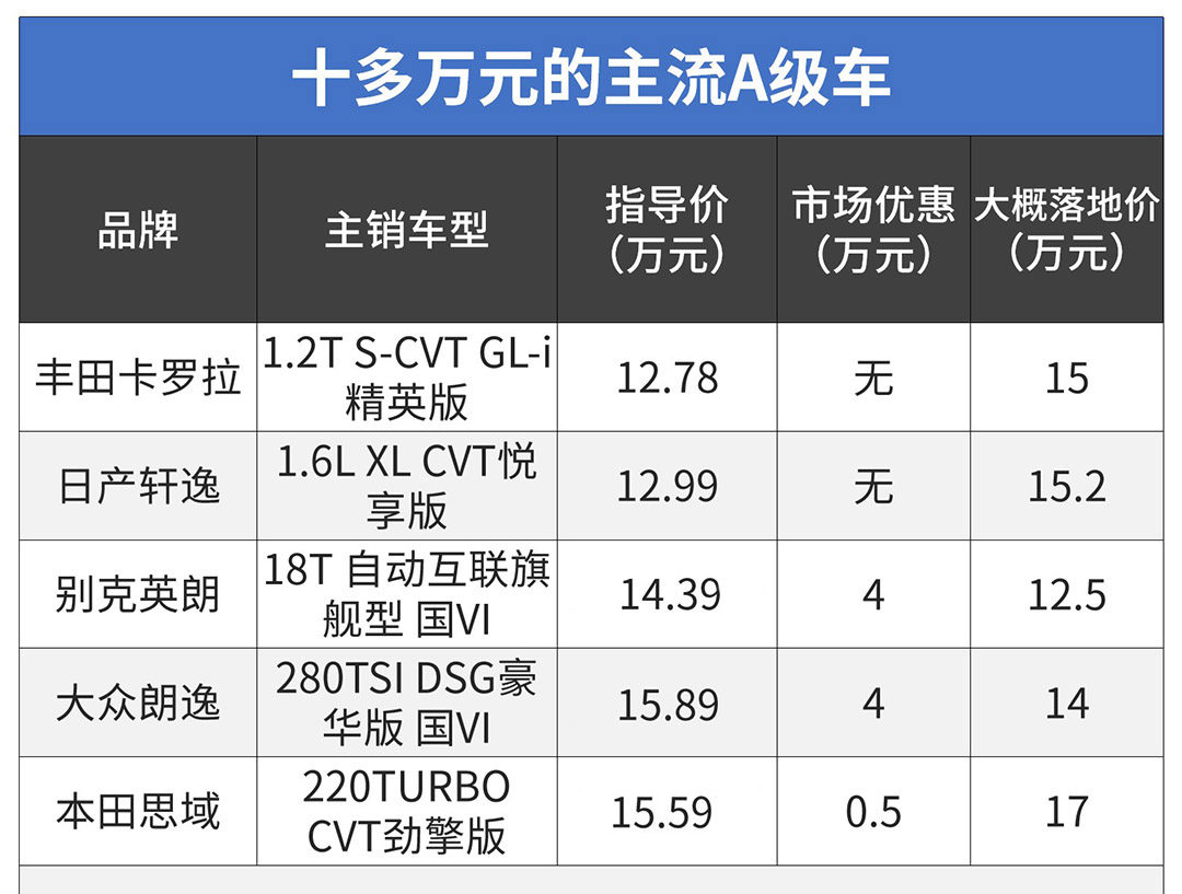 从表格来看,即使是指导价相差无几的车型,由于市场优惠的原因,实际的落地价也有较大的出入,但是整体保持在2-4万元之间,像全新一代的卡罗拉和轩逸,以及中期改款的思域,由于刚上市没多久,基本上没有任何市场优惠可言,如果是这个时期购入,就需要花较大的费用。