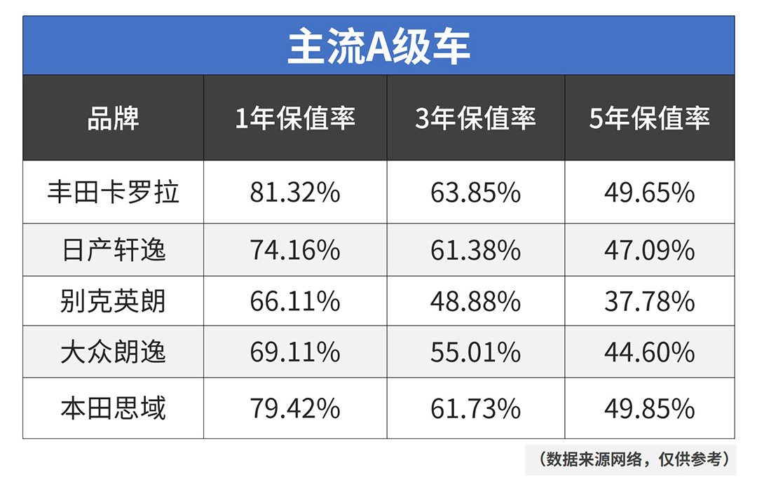 无论是新车还是二手车,其实也是需要考虑未来的保值率的。从短期来看,如果选择A级车,那么两年内出售将会承受一个较大的损失。但是从3年以上的使用时间来算,一台全新A级车的车价损失,和一台二手B级车的车价损失,几乎是相差无几的,所以这样看来二者是不相上下的。