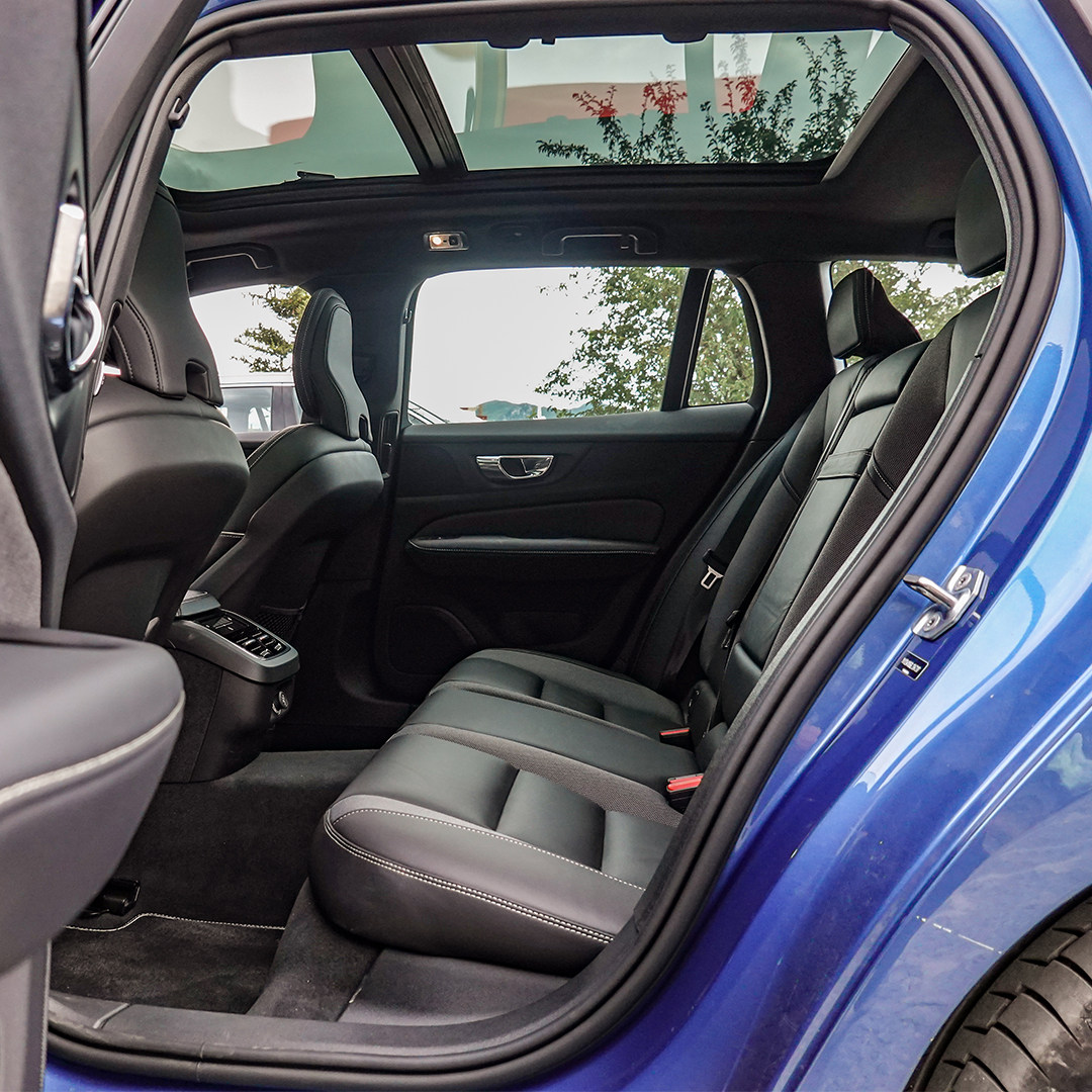 像我这样长达1700mm并且身形普通的成年人想要在沃尔沃全新V60的后排座椅上座的舒适,至少需要让前排座椅再前移多个300-500mm的距离,这样我就能把腿摊开了,充分享受后排坐垫的承托了。
