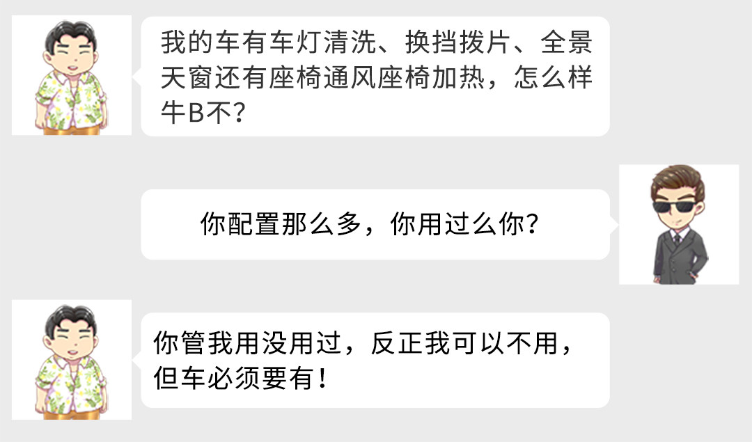随着科技的发展,越来越多从前象征尊贵的配置被下放到百姓身边,但真的都适合我们吗?我想并不是的。目前我国消费者对配置的要求略显模糊,很多时候会有“我可以不用,但你必须要有”的想法。