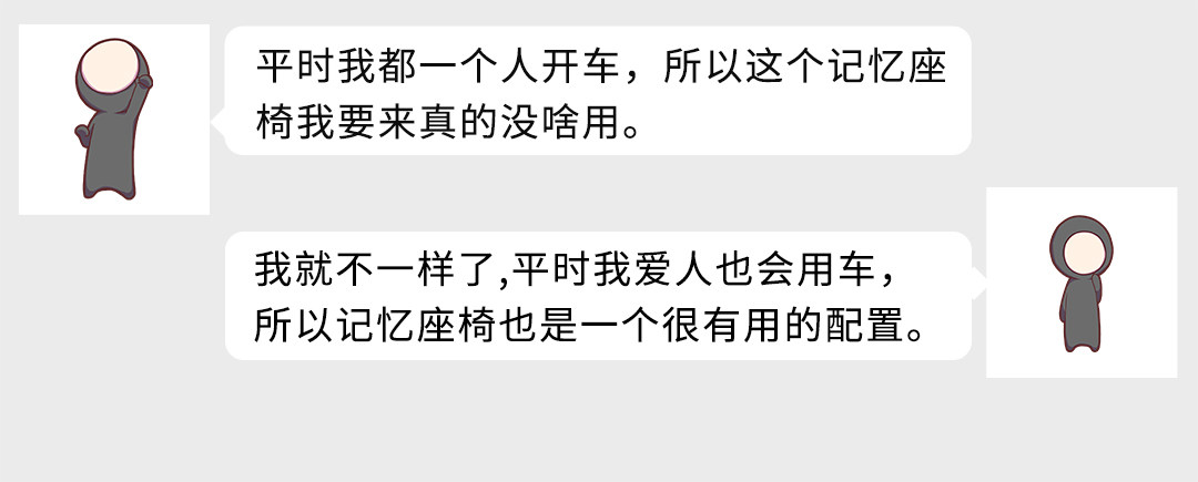 其实教授认为记忆座椅还是个相当实用的配置,教授家里一家三口都会开车,但是苦于家中只有一架老森林人,所以经常用车以后都得重新调整一次座位,十分不方便。但有了记忆座椅就不会有这样的烦恼,即使是一个人开车也可以设置几个不同的驾驶坐姿方便在旅途疲倦时调整坐姿。