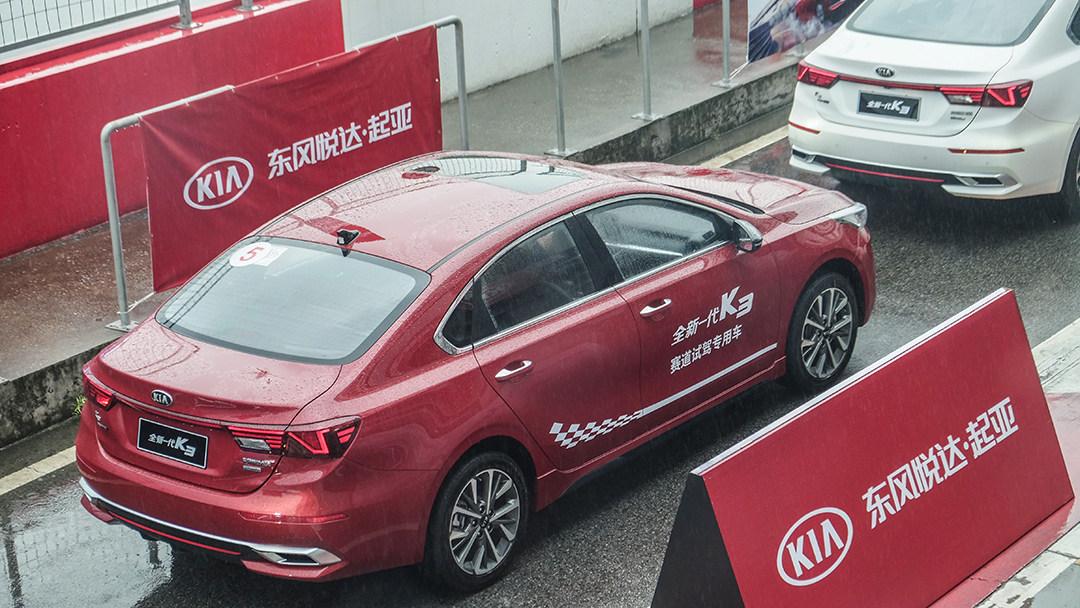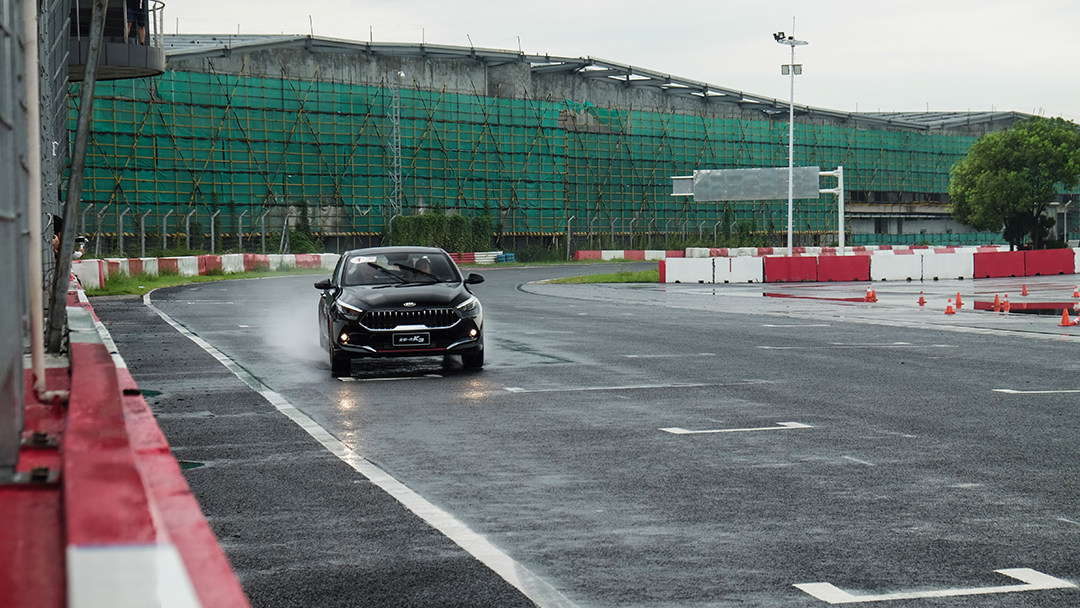 也或许是觉得难度还不够高,当天还下了一场不小的雨,在这种情况下…开着原厂状态下的起亚K3无疑是如履薄冰。