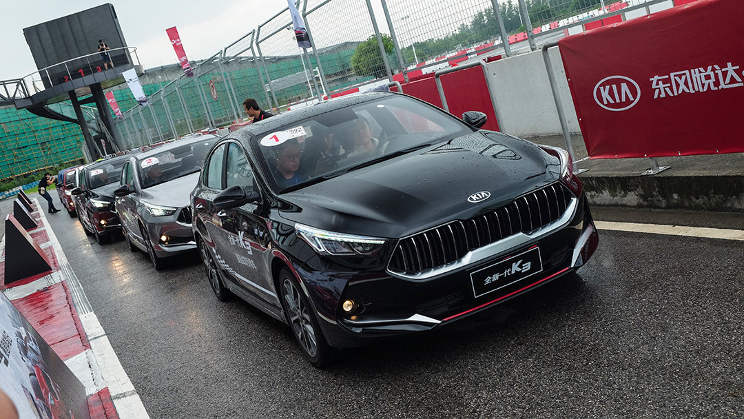 在这种基调下,东风悦达起亚安排了我们2+3总共五圈的试驾,其中还有一圈是考验驾驶技术的计时圈。此次活动有着接近40人,短短两个多小时内,这些素车状态的起亚K3将面临最为严酷的考验。
