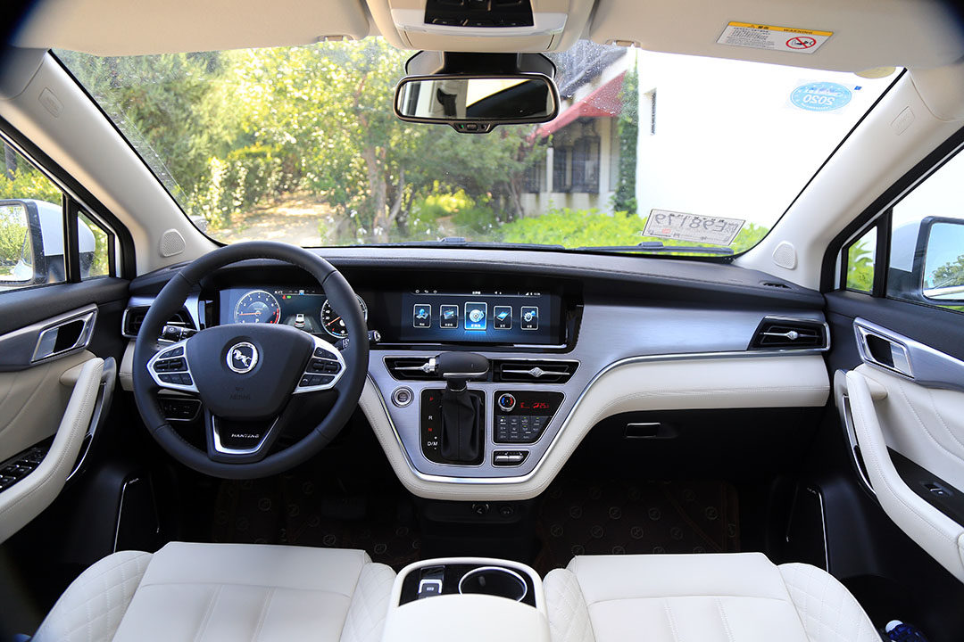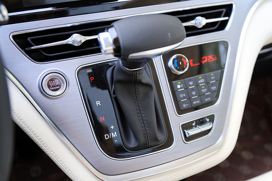 进入到车内我们可以看到,汉腾V7的内饰是比较传统的MPV内饰布局,尤其是挡把的位置和中间通道的设计。但是与传统不一样的是,汉腾V7融入了很多现代的因素。