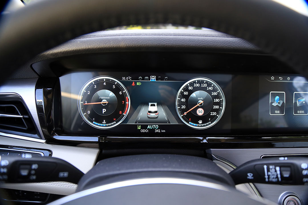同样吸引人眼球的12.3英寸液晶仪表与12.3英寸中控大屏衔接在一起,这也是当下比较流行的一个设计,非常具有科技感和视觉冲击力。而在内饰的整体做工用料属于上乘,能够给驾乘者营造舒心的内饰氛围。