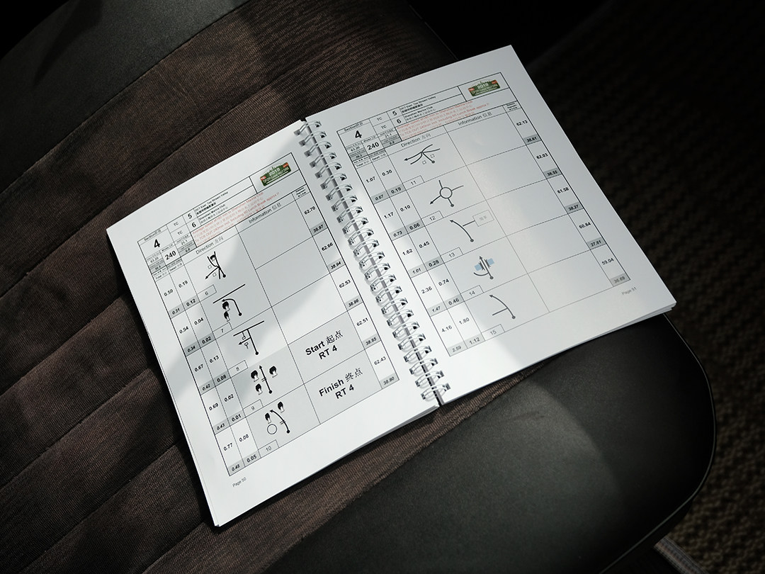 多设置于城市道路的经典车拉力赛路线并不复杂,但对于初次参与此类赛事的教授来说,如何看懂路书并且按照规定时间精准抵达赛段终点才是难点所在。在这本厚厚的“路书”中,包含了接下来的两天赛程里每一条比赛路线涉及的每一个途经点信息,包括有行进方向、途经点距离等。