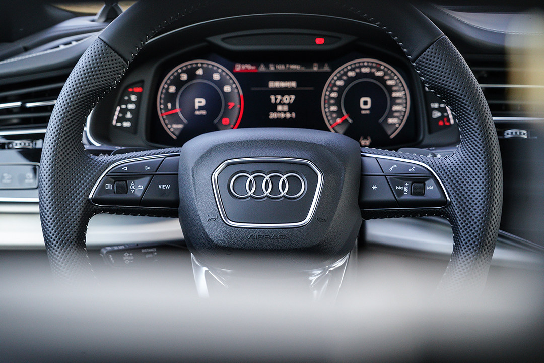 与同为旗舰的A8一样,Q8也带有动态全轮转向系统,后轮会根据车速,实现与前轮同向或异向的转动,转动角最大5°,以此保证Q8低速灵活、高速稳健的操控特性。