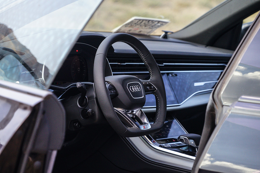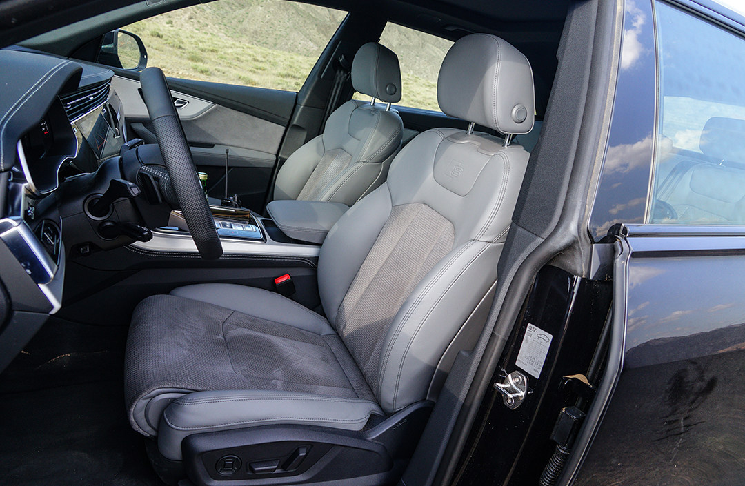 配合这个科技感十足的太空舱的,是几张包裹性强、防滑效果突出的座椅,比起非旗舰定位的车型,Q8的座椅填充显然要软上不少,同时也要更厚实。