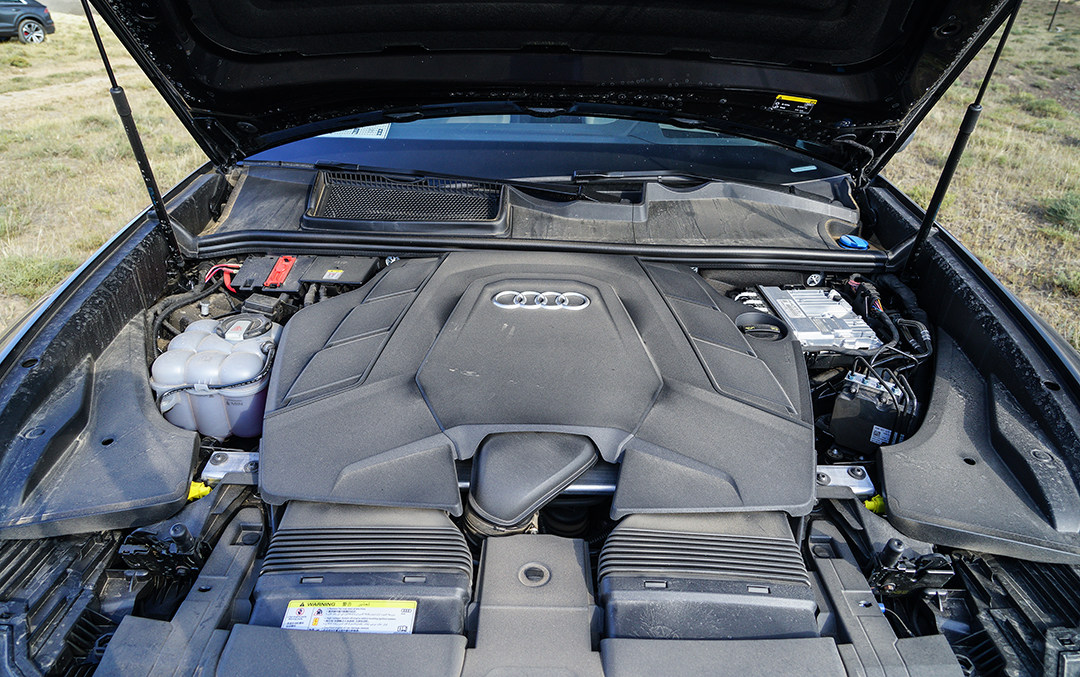 集成式轻混系统,可在制动与滑行中回收能量,改善车辆燃油经济性。而在Q8以55km/h—160km/h行驶时,驾驶员松开加速踏板,车辆能以惯性滑行40s,紧接着皮带式交流发电机启动器(BAS)又会悄无声息地重启发动机。