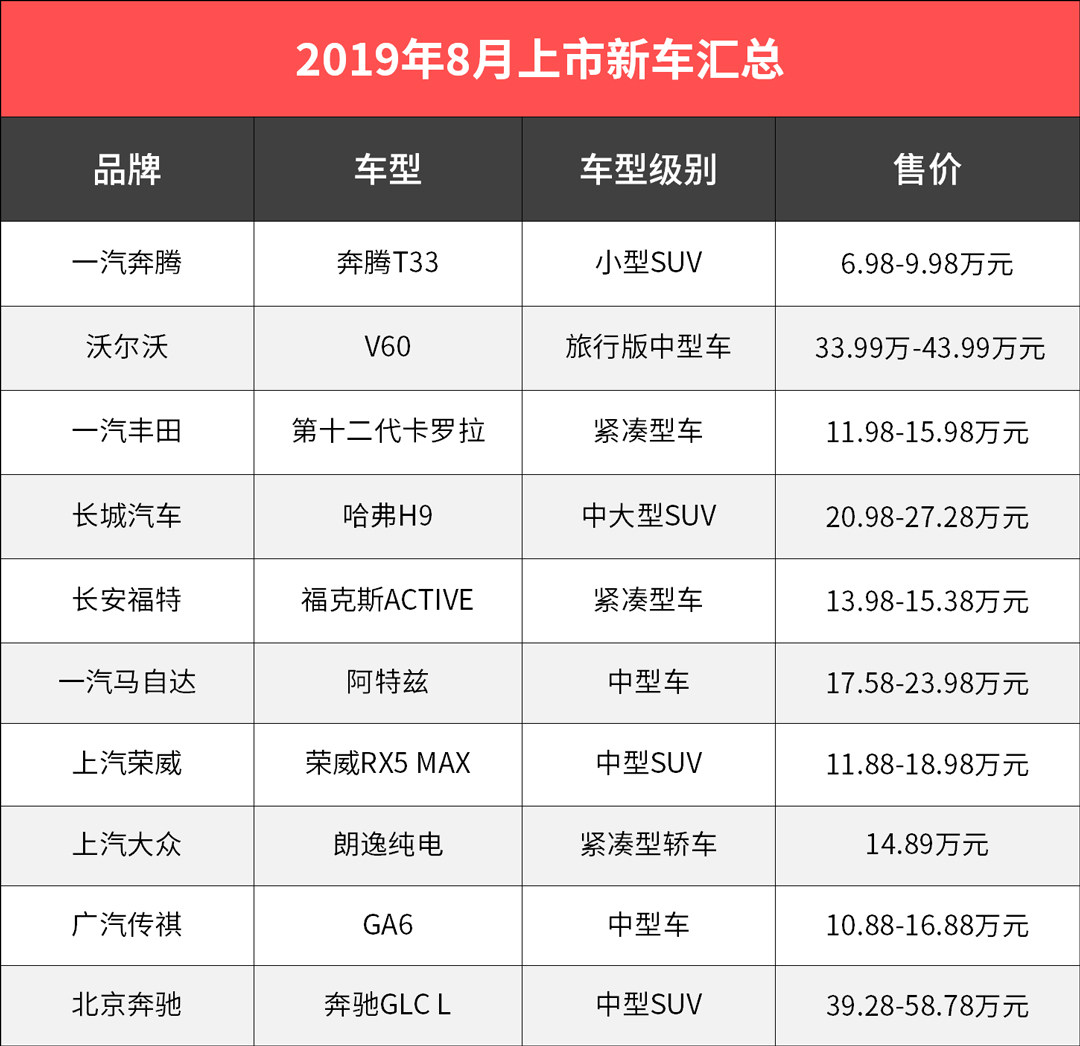 又是一年一度的“金九银十”,购车旺季已经到来。在众多的优惠活动下,想必不少小伙伴都有买车的计划。既然要买车,自然就不能没有新车啦。在刚过去的8月份,上市了不少值得期待的新车,教授已经汇总起来了,大家快来看看有没有你留意的那台车吧?