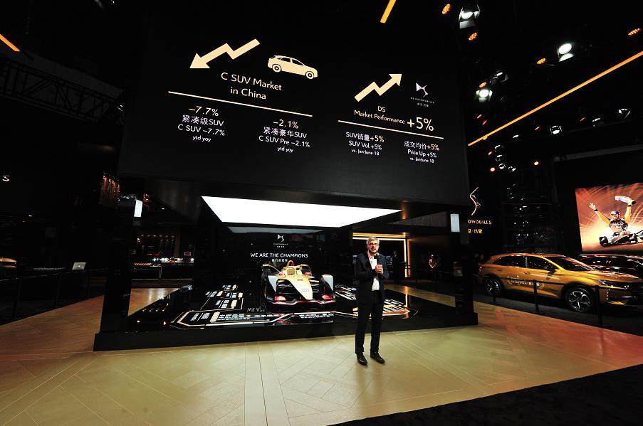 数据显示,DS旗下C级SUV(DS7与DS6)的销量同比上涨5%,成交价上涨5%。同时,DS在海口、深圳、重庆等三个重点城市的C级豪华SUV市场占有率分别提升了9%、6.7%和 4.6%。作为DS的全新一代产品,DS7的产品力及科技配置受到用户认可,60%用户购买了配备DS CONNECT智能互联系统的DS7,50%用户选择了搭载DS智能领航系统的DS7,20%用户购买了配备夜视系统的DS7歌剧院版。上海车展DS四款E-TENSE新能源车型惊艳亮相,FE 2018-19赛季DS钛麒车队勇夺双冠,全新2020款DS7震撼上市,也让DS的声量得到快速提升。
