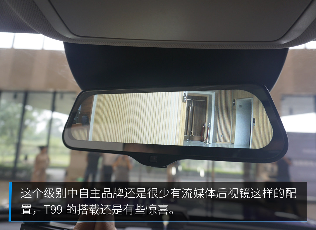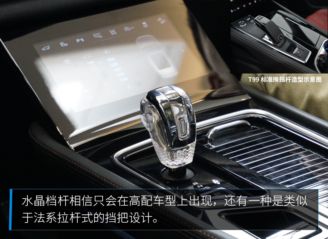 既然定位旗舰,除了外在,内饰更要有旗舰的派头,个人对内饰有个很土味的评价——“,摸的到的地方用皮,看得到的地方用铝。”能把这两点做到位的内饰,怎么都能和“质感豪华”拉上关系。而T99呢,则在我的观点之上,再加入了“科技感”。