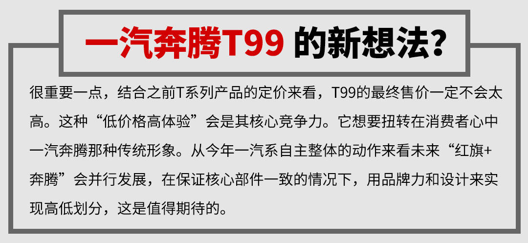 除了好看好用,最终还是要好开。一汽奔腾T99的核心三大件又如何?一起来看看。