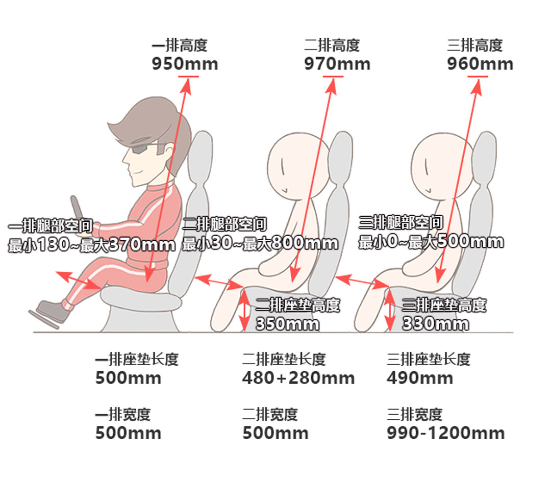 艾力绅锐•混动的第三排座椅座垫长度490mm非常优秀,而座垫边缘与座舱底板之间的330mm落差看似中规中矩。