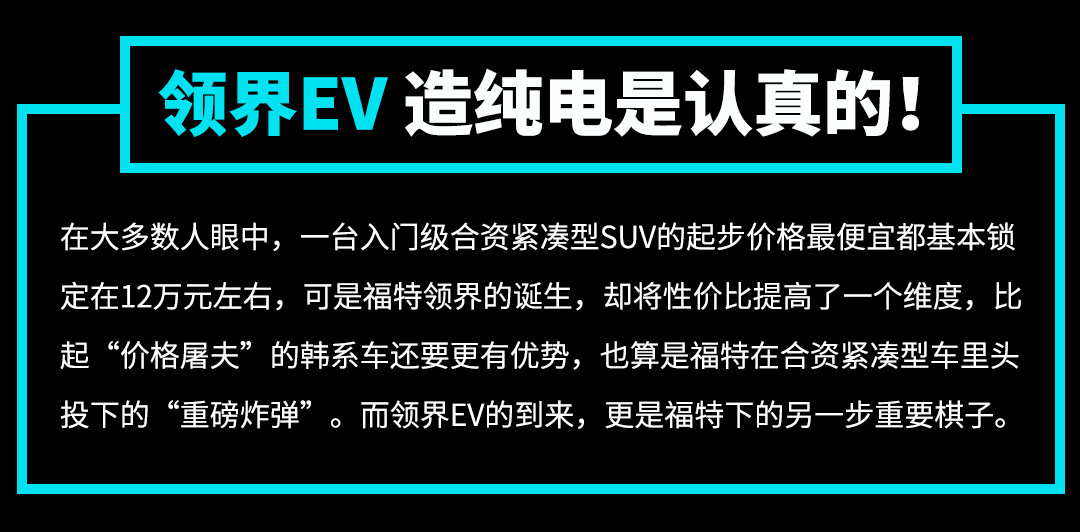 领界EV对于福特的意义非凡,作为在华的首款纯电车型,也作为合资品牌在国内的首款纯电紧凑型SUV,领界EV定位年轻的家庭用户,为他们的出行提供多一个选择的可能。如果是你,领界EV你会看上它哪一点呢?