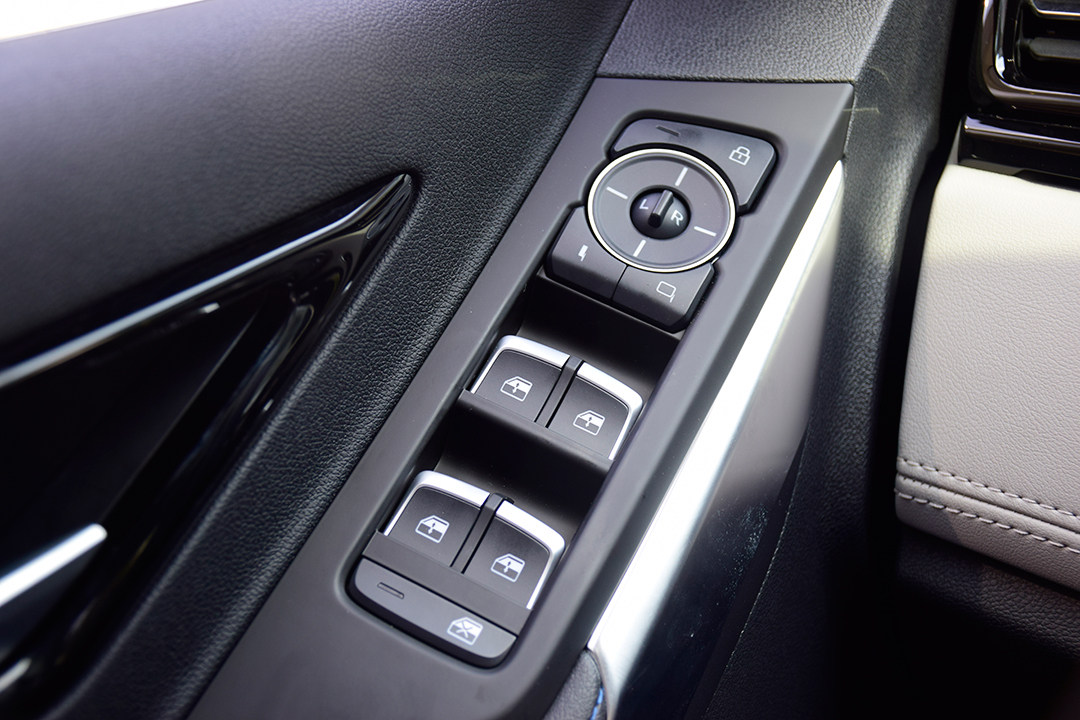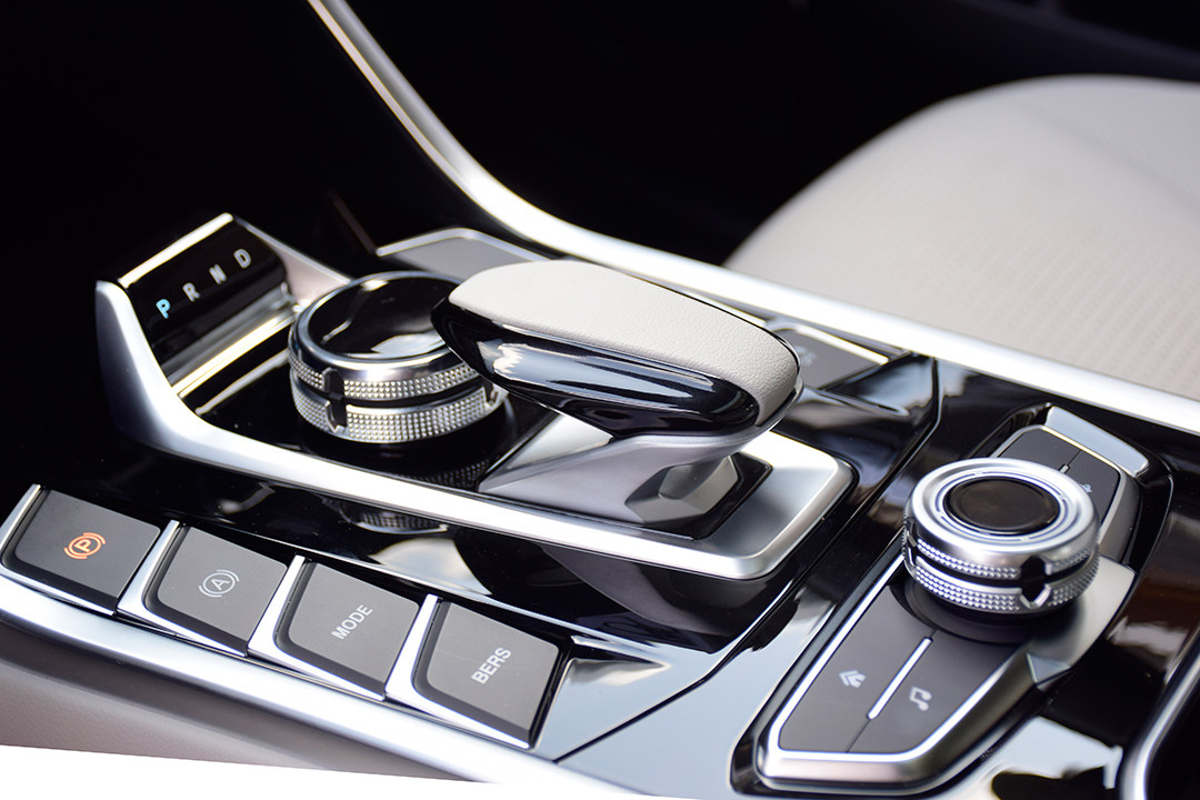 内饰上领界EV基本遵循了燃油版的设计风格,但在细节处有做改动,例如挡把改为旋钮式设计,通过增加旋钮边缘的上下两段开槽,营造更好的细节精致程度。