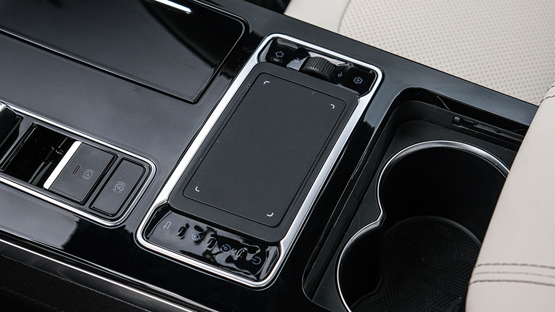 中控屏可以触摸控制,也可以通过挡把处的触摸板控制,而且还有实体按键辅以操纵。