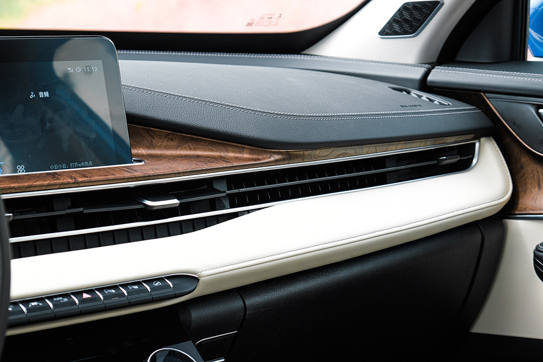 高端更体现在用料上,进入车内,整个内饰,你能抚摸到的,基本都是软质皮革,并有缝线处理,点睛之笔在于中控和门板的木纹饰板,跟雅阁上面的很像,都并非实木,但手感和逼真感已经让人很满意。