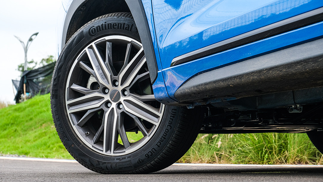 但是轮胎的有掰回一点局面,用上了马牌UC6轮胎,作为一款十来万的SUV来说,规格那是很高的,尤其是拐弯变道车身晃动多,但轮胎抓地力很不错,又多了一两分的踏实。