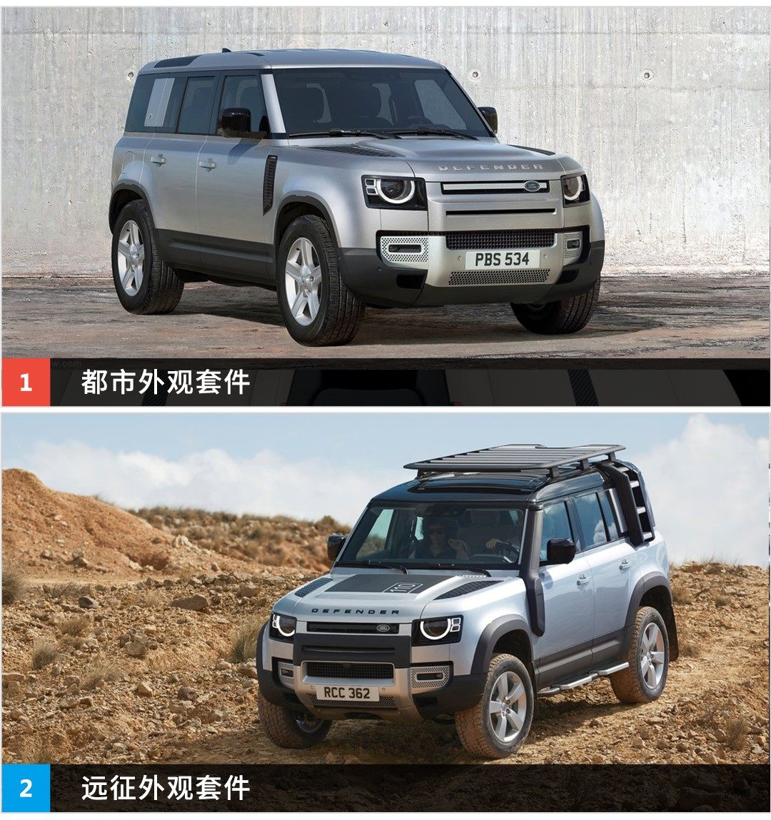 外观上,你如果硬要和我杠说“不能拆门的卫士还越什么野”,那我只能让你左转北汽BJ40了。新一代卫士外观打造了“都市/远征”两类套件,前者轮圈更大,外饰金属件更多更炫,后者前保险杠更粗更结实,轮眉额外塑料件保护,车顶行李架……干糙活不心疼。从根本上把“用/玩”两类消费者划分开。