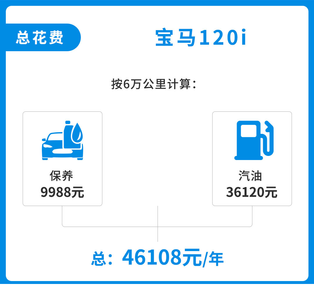 油费方面,宝马120i车主百公里油耗为8.6L/100km,君威28T百公里油耗为9.3L/100km,同为使用95号汽油。宝马120i六万公里油费为36120元,君威28T六万公里油费为41850元。