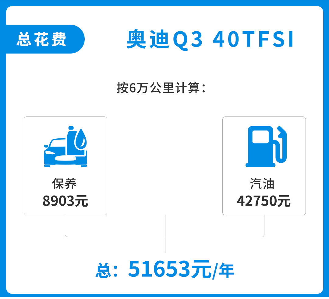 以6万公里计算,奥迪Q3的保养费用为8903元(含工时费),而途观L的保养费用为6577元(含工时费)。相比其他品牌,大众系的维修保养价格还是比较良心的。
